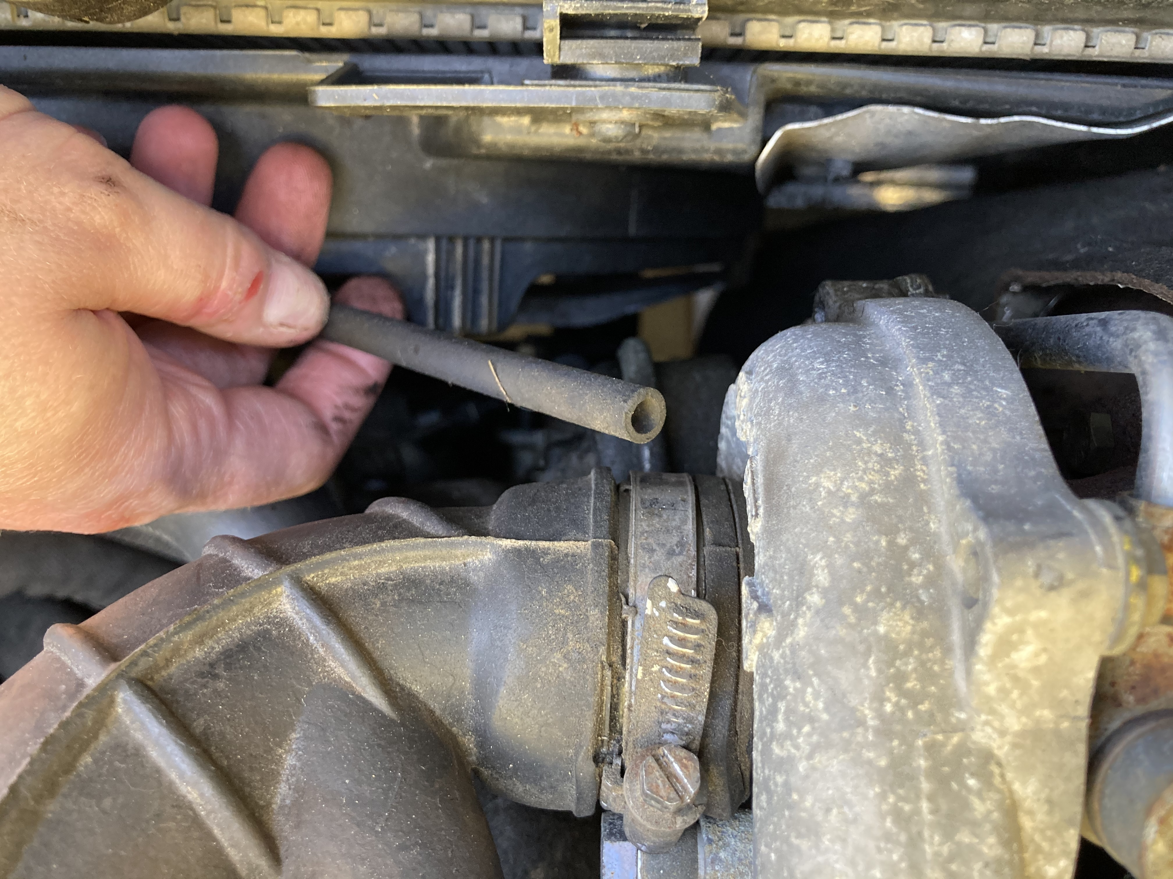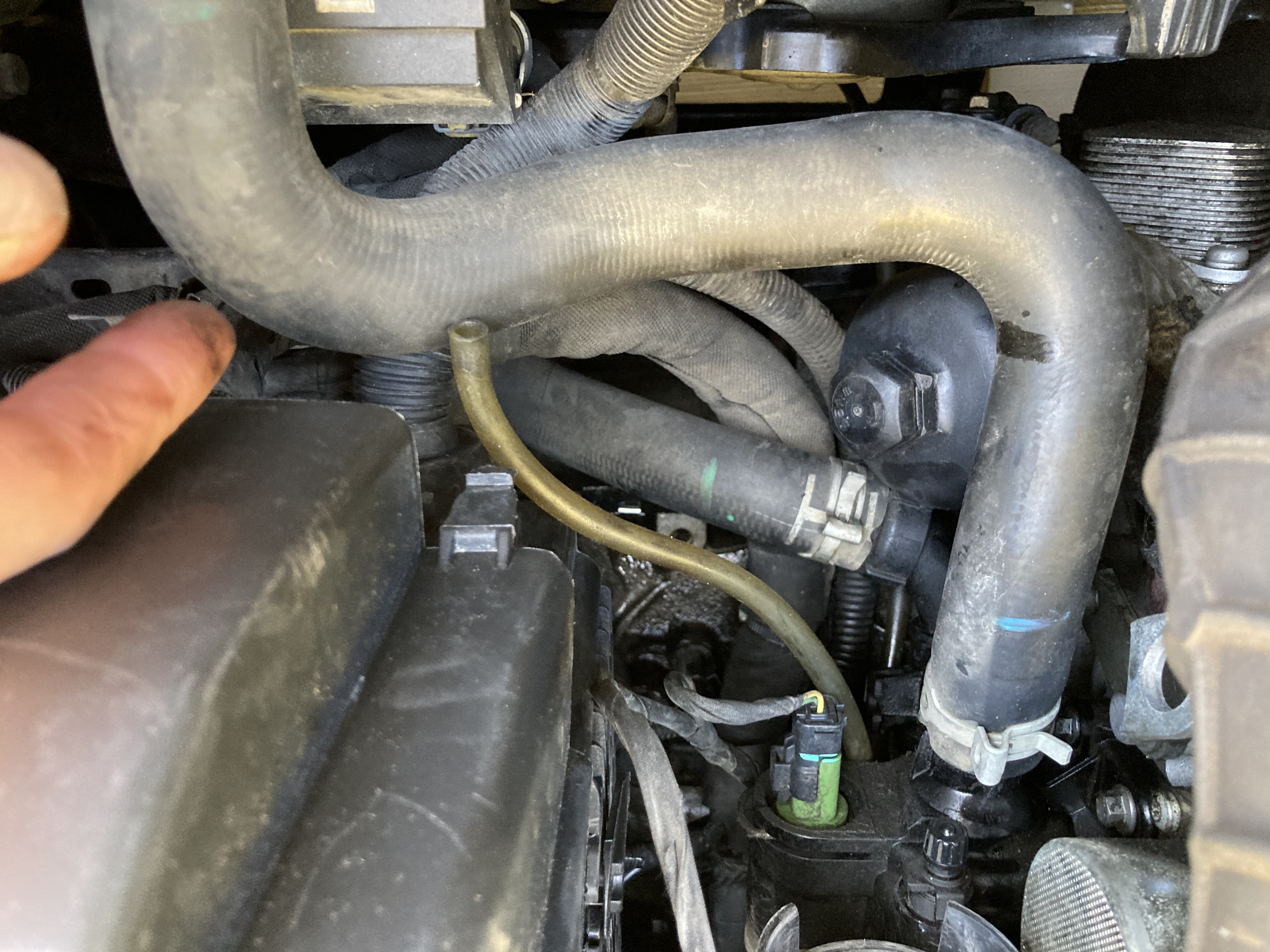 Évidement je vais retourner au garage demain mais en cherchant un peu j'ai trouvé ce tuyau débranché aux deux extrémités. Dont une qui pendouillait dans le vide côté radiateur.