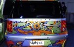 Festival de courbes et de méandres, la peinture de Moerman pourrait se définir comme une peinture de l'exubérance. Ses ouvres communiquent une énergie positive, envoûtante et incontestablement futuriste. Ses motifs, tels des organismes vivants, se répandent pour investir et explorer de multiples supports : toiles, murs, corps, ... Peugeot 1007.